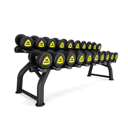 Hold dit træningsområde ryddeligt og organiseret med ZIVA Dumbbell Rack, designet til opbevaring af op til 10 par håndvægte. Dette robuste og pladsbesparende stativ giver nem adgang til alle dine håndvægte, samtidig med at det sikrer stabilitet og sikkerhed under brug. Perfekt til både hjemmegym og fitnesscentre, hvor funktionalitet og orden er vigtig. Med ZIVA Dumbbell Rack får du et praktisk og holdbart udstyr, der hjælper dig med at optimere din træningsrutine.